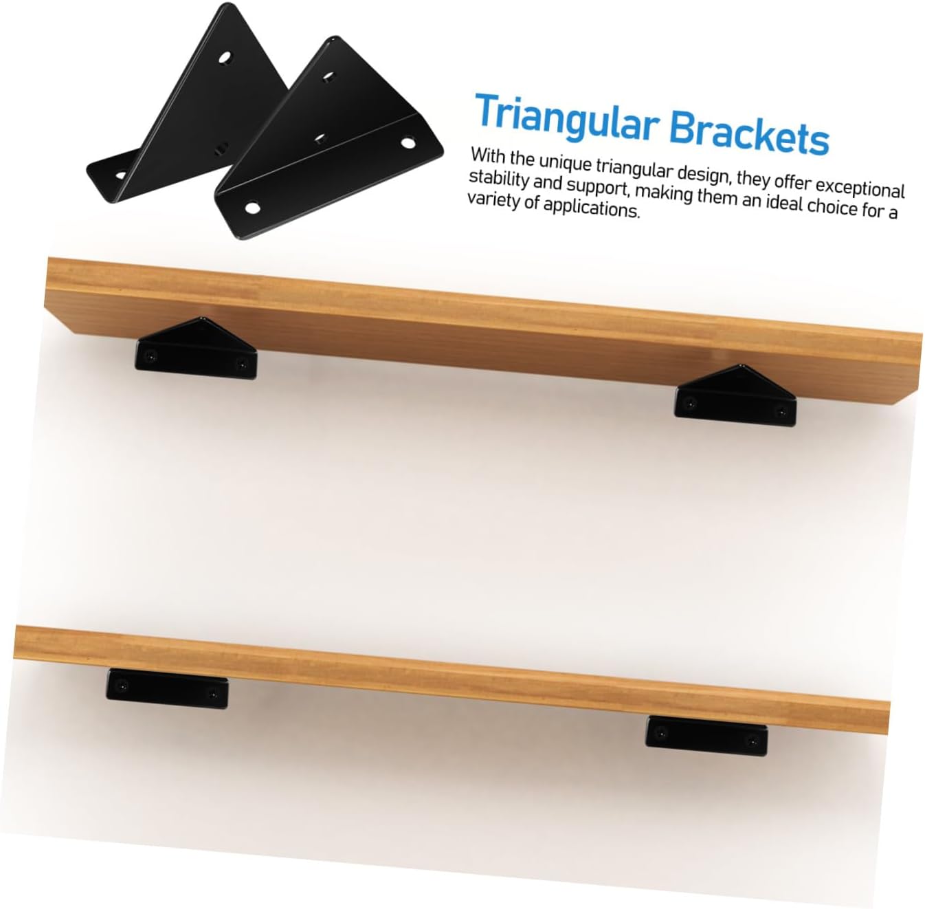 Package List 6 x shelf brackets Characteristics -Size: 10.00X8.00X2.50cm/3.93X3.14X0.98in l-shaped shelf brackets - Enhanced durability: Made from iron materials, these shelf brackets are strong and sturdy, have a good resistance to deformation metal bracket. - Hidden design: The triangular brackets are designed to attach the shelves directly under the bottom, can not be noticed easily floating shelf bracket. - Simple installation: No need to worry about complicate installations, it only take a few minutes to mount them on wall wall floating shelf bracket. -Product Info:Wrought iron bracket - Stable stands: These triangular metal stands provides stability for your floating shelves without shaking or dropping off floating shelf support. -Color:Black floating brackets for shelves -Material:Iron floating shelves brackets - Space-saving: The metal brackets fully use the room space for creating additional storage space at your living or working spaces floating metal shelf brackets.Goods Informationmetal storage bracket They are invisible under the shelves, won't affect the home decor.wall-mounted shelf hardware With the unique triangular design, they offer exceptional stability and support, making them an ideal choice for a variety of applications.decorative floating shelf bracket These triangular brackets are made from fine wrought iron to ensure durability